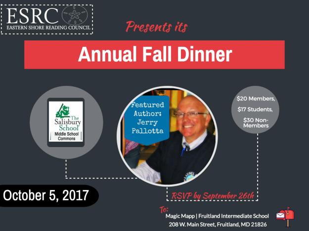 SALISBURY, Md. — The Eastern Shore Reading Council (ESRC) presents its annual fall dinner with keynote speaker and children’s author Jerry Pallotta, who penned several engaging books relating to nature, on Thursday, October 5, 2017 at The Salisbury School Middle School Commons.