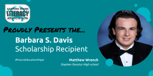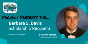 Salisbury, MD — The Eastern Shore Literacy Association (ESLA) is proud to announce Benjamin Jackson and Matthew Wrench as the recipients of this year’s Barbara S. Davis Scholarship. The annual scholarship honors Davis, an ESLA past president and membership chair, who retired from  Wicomico County Public Schools. Davis is remembered for her passion towards sparking the love of reading to all of her students and those in the local communities in which she served.